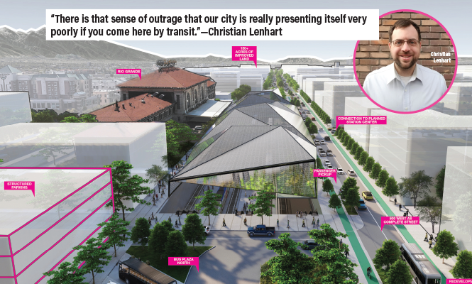 The experience was the latest in a long line of frustrations that in 2020 prompted Lenhart, an engineer, to dream up what a proper SLC train station could be. And after studying successful rail rehabilitation projects around the country, he prepared a 60-page draft proposal calling for a so-called "train box" along 500 West that would move freight and passenger lines underground and reactivate the historic Rio Grande Depot as a bonafide transportation hub.